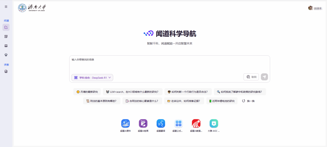 “闻道科学导航”以“前沿洞察·深度理解·知识创造”为核心,通过大语言模型、多模态语义理解与动态进化AI知识库三大技术引擎,打造贯通科研创新、教学实践与自主学习的全场景智慧生态,推动学术服务从经验驱动向AI 深度赋能跃迁,为师生构建更前沿、更专业、更精准的学术赋能新范式。