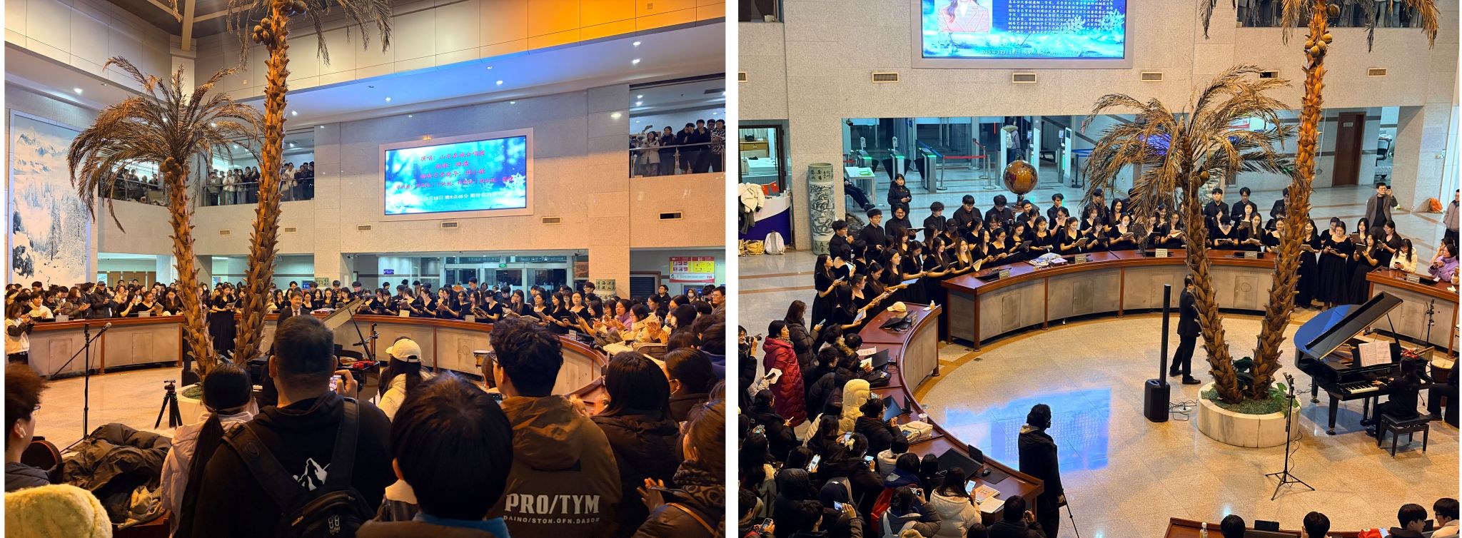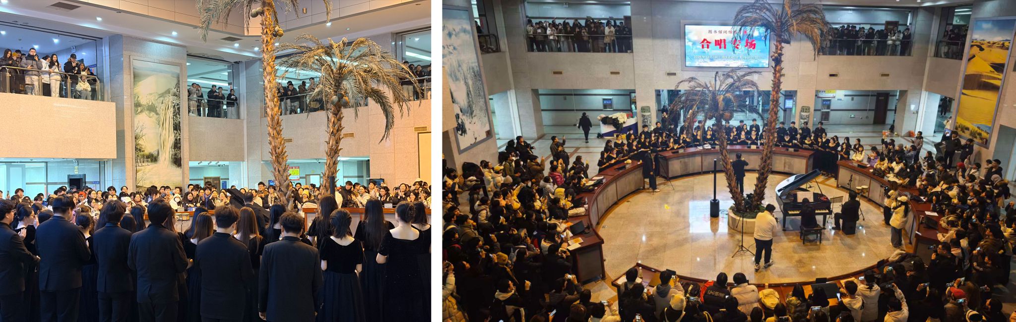 冬夜渐深,寒意初透。12月18日晚,图书馆内响起阵阵温暖而振奋的歌声。值此考研冲刺关键阶段,山东泉城合唱团以一场精心筹备的闭馆音乐秀专场表演,为正在紧张备考的广大学子送上诚挚的慰问与有力的鼓舞。
